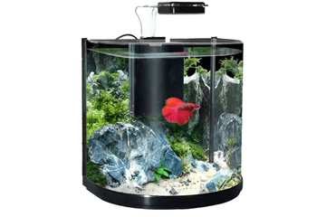 - Contemporary Curved glass design allows for 180° views of your aquarium