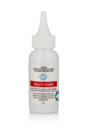 Blue Planet Multi Cure is a multi-purpose formula which is specially designed to treat White Spot (Ichthyophthirius multifillis), Velvet Diseases (Oodinium spp.) and other fungal diseases in freshwater fish (both tropical and cold water).